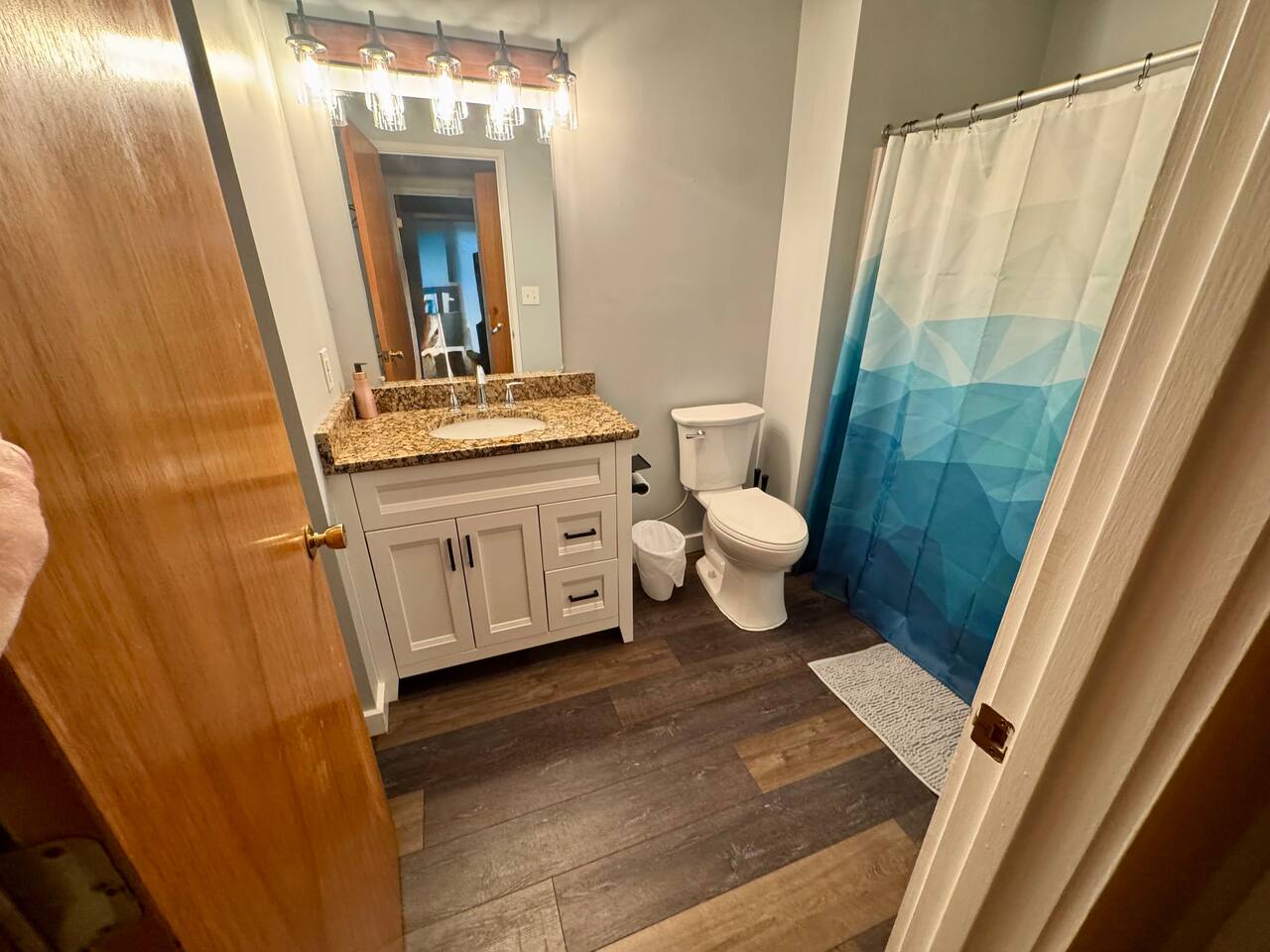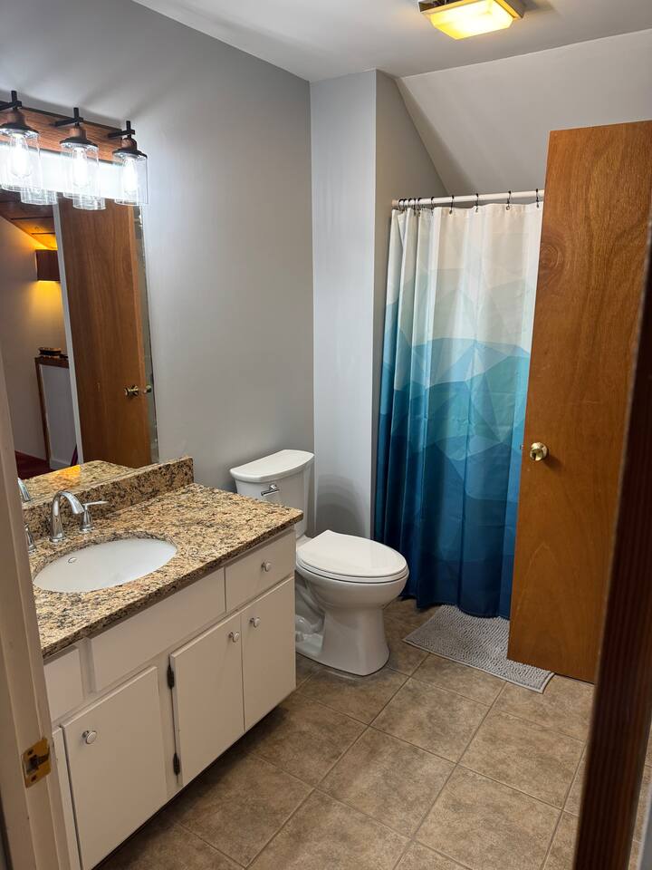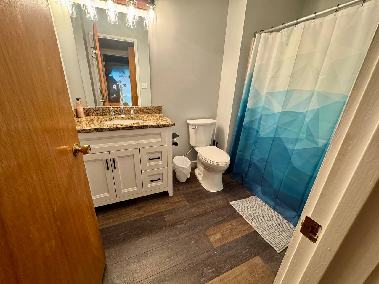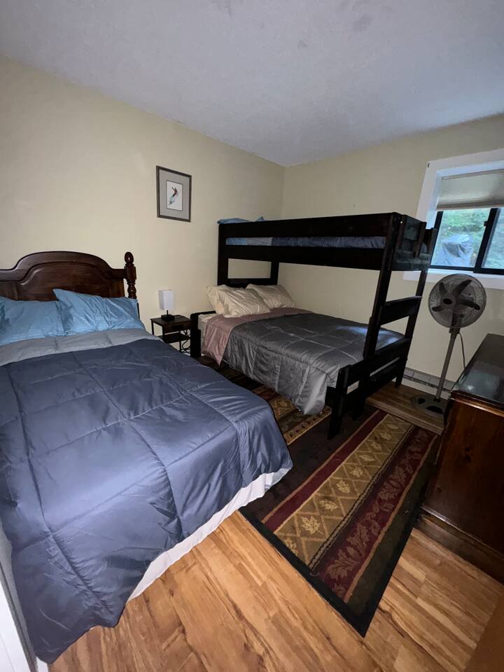 The main level has 1 bedroom, a full bath, a kitchen, dining area, and a living room. On your way upstairs you will find a cozy loft with a beanbag chair and a futon. Upstairs there is a master bedroom, a second bedroom, and a full bath. The downstairs level has a Master bedroom, a second bedroom, a full bath, a kitchenette, and a living room.
